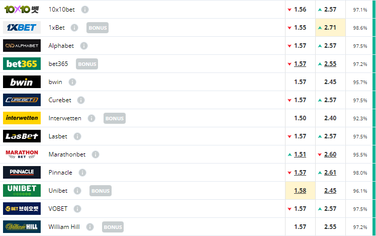 이경기 해외 배당은 1.50부터 시작하며 최고