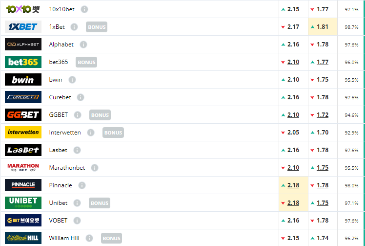 최소 1.65~1.77까지 배당이 형성되어 있으며 ,