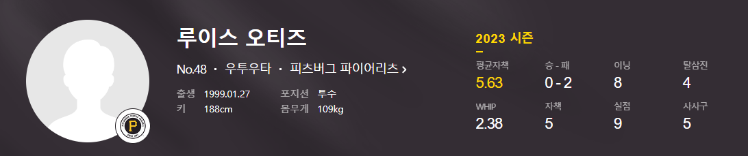 루이스오티즈 선수는 올시즌 2경기에 등판하였으며 ,