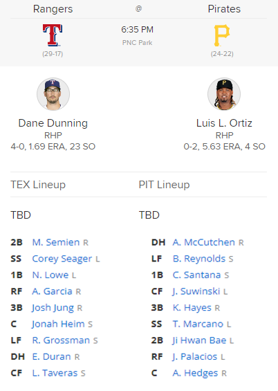 피츠버그 VS 텍사스 분석 MLB 선발