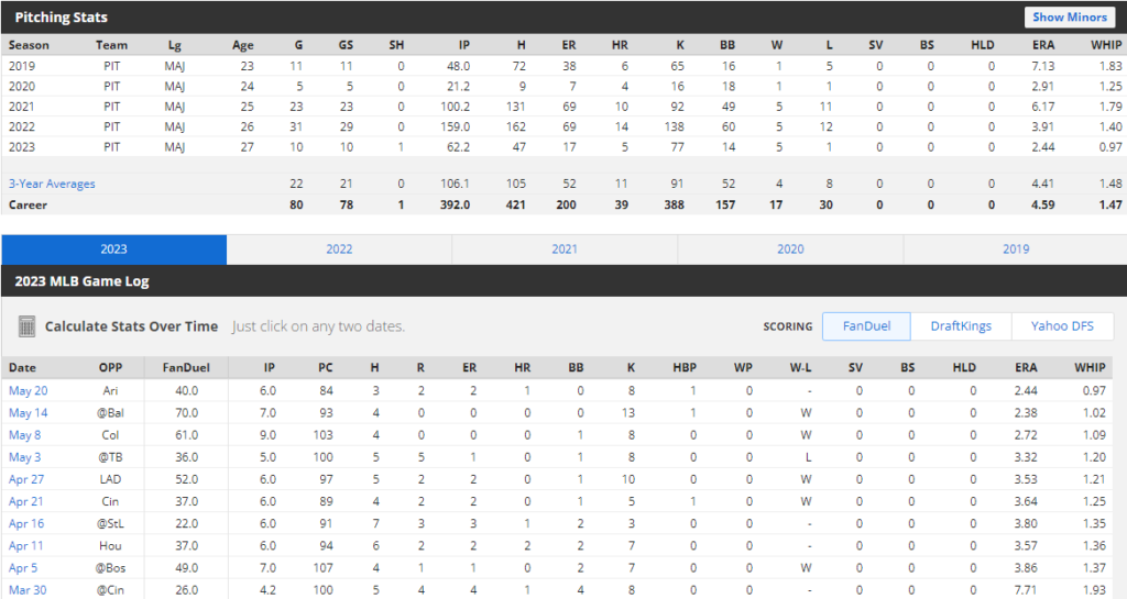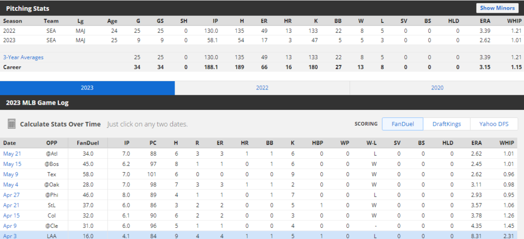 올해 25살 젊은 투수로 2022시즌 메이저리그