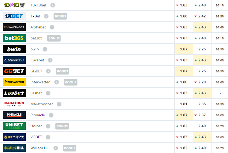 홈팀 시애틀 해외배당 평균 1.64