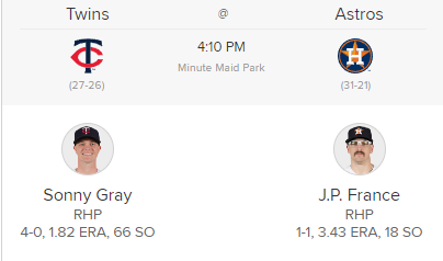 5월30일 휴스턴과 미네소타 경기 입니다.