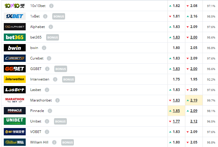 언더오버 기준점 7.5로 잡혀 있습니다.