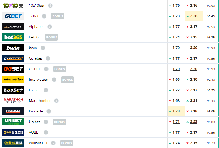 언더오버 기준점 8.5 형성이 되어 있습니다.