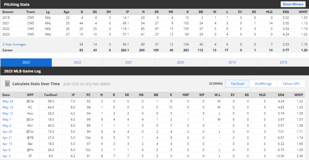 5월30일 시카고화이트삭스 VS LA에인절스 분석 라인업